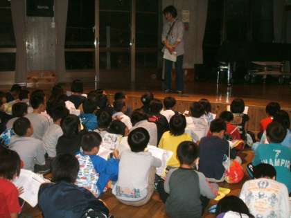 キャンドルファイヤーの後,一日の振り返りをしました。
