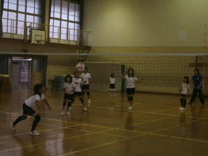 運動場ではサッカー部,体育館ではバレーボールゲーム形式の練習をしていました。