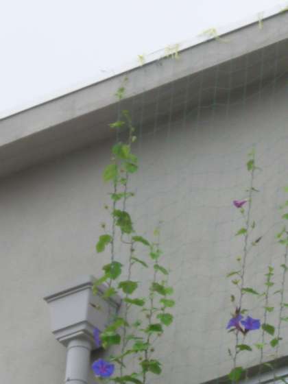 緑のカーテンのオーシャンブルー見事に葉を茂らせ,毎日たくさんの花を咲かせています。二階まではぐんぐん伸びていて,真夏の猛暑で伸び悩み,8月9月は少しずつ少しずつ伸びていました。