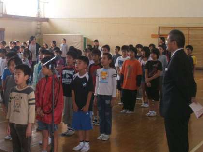 元気いっぱい校歌を歌って,校長先生が,学年ごとにがんばったことを紹介しました。