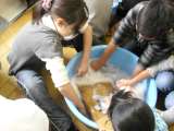 3年生が総合的な学習の時間に,「せんたく板大作せん!」で,自分の手で洗濯をする...