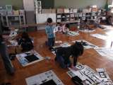 3年生が,書き初めをしました。学校での毛筆習字は3年生からで,初めて画仙紙に書...