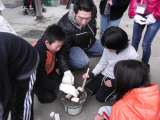 3年生が,算数の重さの学習で,台計りを使って1kgの重さの土を計ることをしまし...