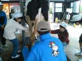 乳搾り体験。牛には 胃が 4つあります。上の歯はありません。 乳を搾りました。人...
