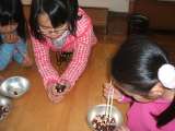 中間休みには,ランチルームで豆つまみ大会をやっています。 豆をおはしでつまむのは...