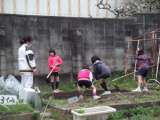 4年生は,理科でツルレイシ(ゴーヤ)の観察学習をします。そのための畑づくりをし...
