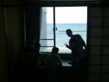 お昼ご飯です。海は多少荒れていますが,天気の方はまだもっています。お腹すいたと...