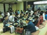 大広間で3校そろっていただきました。品数も多く,それに煮魚や貝のすまし汁も味わ...