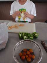 お誕生日と畑の収穫をお祝いして,そしていつもいっしょに学習をしたり遊んだりする...