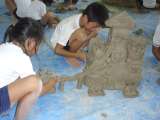 1年生は,大きな粘土を全部一度に使って全体から制作するというのは少し難しかった...