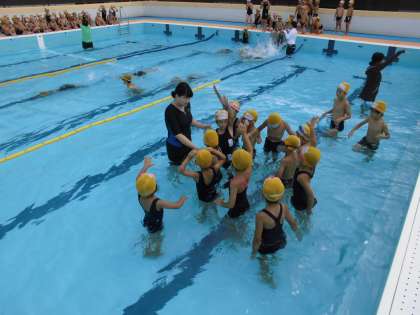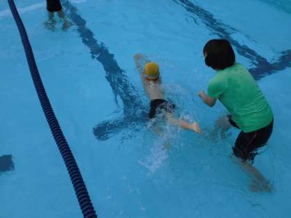 小学校の大きなプールにびっくりしたことと思います。最初顔もつけられなかった子どもがつけれるようになったり,泳げる距離が延びたりした子など,みんな頑張ることができまし。
