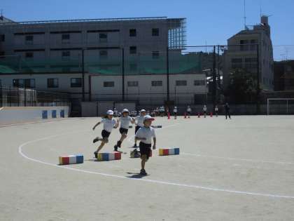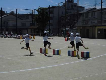 6月9日(土)の体育大会に向けての練習が始まっています。3年生は,チャレンジ走の練習をしました。高さの違う箱をリズムよく跳び越してゴールを目指します。どの学年も,本番でかっこいい姿を見ていただけるように,これからいろいろな競技や演技の練習を進めていきます。おうちでも,応援と励ましの声掛けをいただけると子ども達もさらに力を発揮できると思います。どうぞよろしくお願いします。