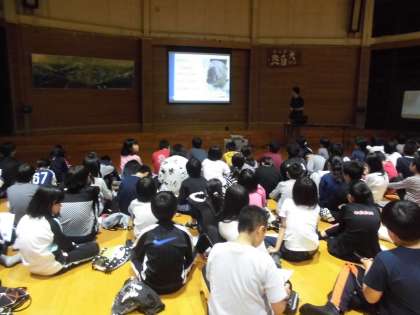 食事の後は,4日目に行く予定の鳥羽水族館の方からお話を聞きました。ペンギンやアザラシについてのお話や,仕事でのやりがいなどのお話を,子どもたちはとても興味深く聞いていました。お話を通して,水族館で出会える生き物たちや水族館での仕事についての興味もさらに深まりました。