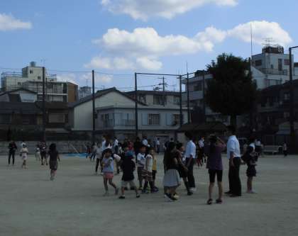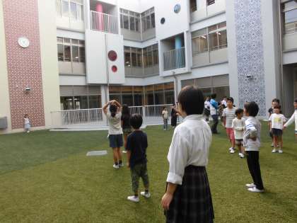 9日(火)の昼休みにフレンドリー遊びをしました。今回は9年生と一緒に,フレンドリー遊びをしました。各グループに分かれて教室や中庭,運動場などで,おにごっこやだるまさんが転んだなどをして遊びました。その中で,9年生が低学年の子と手をつないだり,やさしく声をかけたりする姿をたくさん見かけました。普段は離れている子どもたちですが,十分にフレンドリー遊びを楽しむことができたようです。