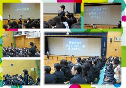 東学舎で4学年が集まり『ステージ道徳』を行いました。テーマは「部活動から学んだこと」です。「目標達成のために何が必要か?」「努力の先に何が残るのか?」を9年生の今の思いを聞きながら,4学年みんなで考えを深めました。次に来る自分の挑戦の時に向けて,また明日からがんばってほしいと思います。