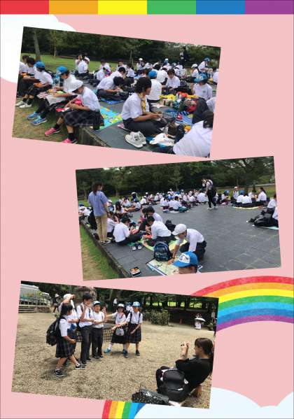 ウォークラリーが終わり,奈良公園で昼食の時間です。みんな,おいしそうに食べていました。