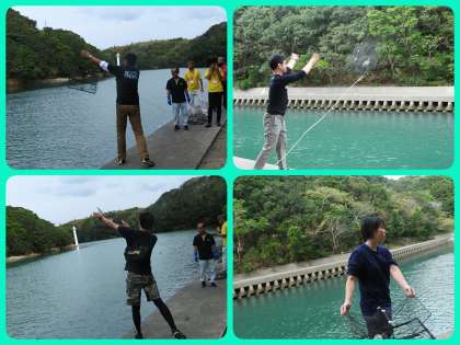 「かご漁」の仕掛けを行いました。かごの中に「オキアミ」というエサを入れて海に投げ入れました。担任の先生が代表してそれぞれのグループが入って欲しい魚など大きな声でコールして願いを込めました。明日の朝に引き上げて取れ具合を確認します。