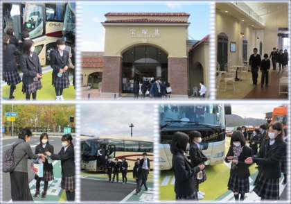 1回目の休憩を,宝塚北SAでとりました。とてもおしゃれなSAで,みんなびっくりしています。休憩後は,消毒をしてバス乗車です。消毒係がしっかり活動してくれています。