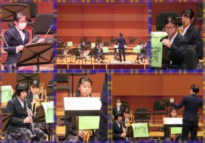 11月6日に,京都堀川音楽高等学校の音楽ホールで行われた「第37回京都市中学校総合文化祭・生徒音楽会」に,本校吹奏楽部が出演しました。「幸せなら手をたたこう」「A Whole New World」「カイト」の3曲を演奏しました。夏の吹奏楽コンクール以降,初めての演奏会出演にとても緊張していましたが,素晴らしいホールに自分たちらしいサウンドを響かせてくれました。これから,人前で演奏する経験をたくさん積み重ねて,バンドとして成長してくれることを楽しみにしています。