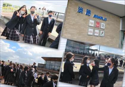 出発から2時間がたち,淡路ハイウェイオアシスで2回目の休憩をとりました。淡路島に渡って,美しい景色が広がっています。