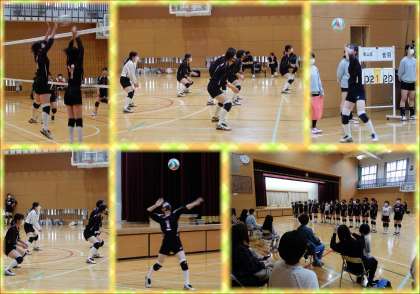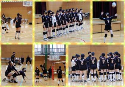 女子バレーボール部は,音羽中学校と試合を行いました。試合開始直後は,緊張からか硬さがみられました。相手の低いサーブや力強いアタックに翻弄され,1セット目を先取されました。2セット目に入り,チームみんなで声を掛け合い,落ち着きを取り戻そうとする姿が見られました。相手の攻撃が続く場面では,コート中央に集まり「1本切ろう」と声を掛け合いながら,チームみんなで力を合わせてプレーしましたが,セットカウント0-2で試合を終えました。