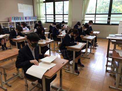 全国学力・学習状況調査が行われました。姿勢を正してテスト開始の合図を待つ姿や最後まであきらめずに問題に取り組む姿勢、時間が余れば見直しをする様子はさすがです。義務教育の最後の1年がスタートです。この1年間は様々な場面でこれまで培われた力を発揮してくれることでしょう。がんばれ!9年生!