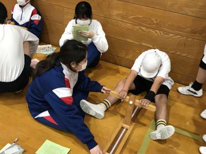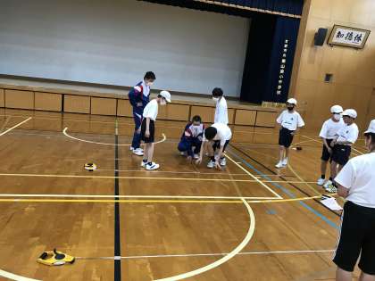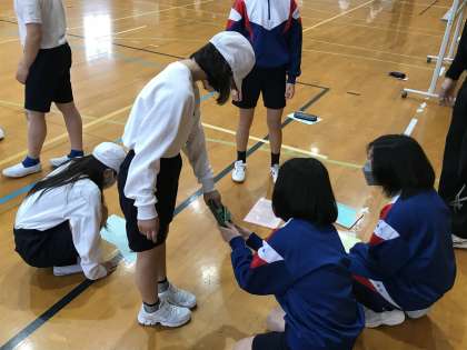 体育の時間に6年生と9年生で合同の体力測定を行いました。6年生の計測を9年生が担当し、去年と比べての体力の向上を確認しました。優しく丁寧に教える9年生の姿がステキです。