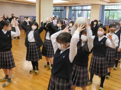 最後に第1回Team勝部CUP争奪戦が行われました。男女別に一列になり、ボールをまわしていきます。優勝クラスは8年1・3組でした!おめでとうございます。どのクラスも楽しみながら一生懸命頑張っていました。次回は体育委員会が企画運営するドッヂビー大会です。