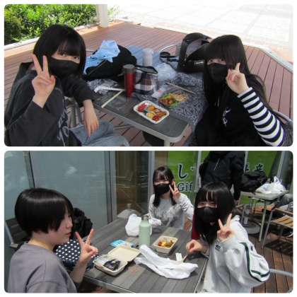 好天のもと、それぞれのグループでワイワイ言いながらの昼食タイムでした。
