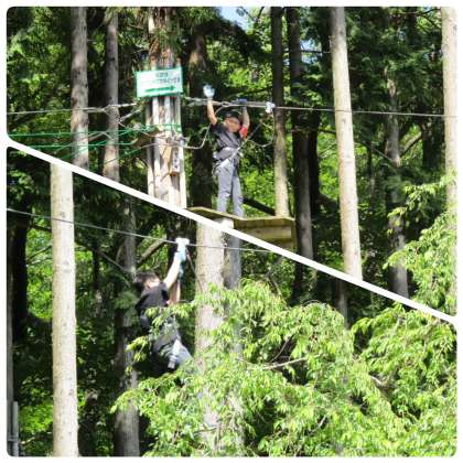 いわゆるフィールドアスレチックです。みなさん、花背山の家で経験済みですが、規模が違います!1番体力を使った体験だったのでは?