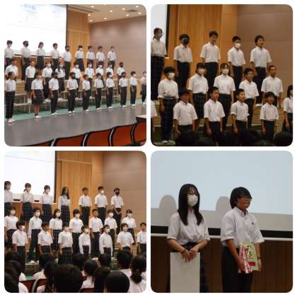 7月5日に6〜9年生合唱コンクールが行われました。昨年度と同様に大谷高校の講堂を借りての実施です。ここ数年間は4学年そろっての合唱コンクールは実施することができていませんでしたが、今年度は久しぶりに東学舎の児童生徒が一堂に会し、行うことができました。合唱をする姿勢はもちろんですが、鑑賞する姿勢も素晴らしかったです。合唱前と合唱後に自然と拍手が聞こえてきました。各学年、これまでの練習の成果をしっかりと発揮することができたようです。