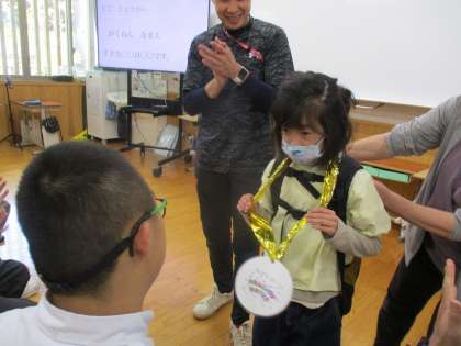 初めて東学舎の1組と交流しました。自己紹介の後、体育館で「だるまさんがころんだ」をしました。自己紹介で子どもたちは、少し恥ずかしそうな様子も見られましたが、交流を喜んでいる姿が見られました。「だるまさんがころんだ」では、体育館に笑い声が響きわたり、楽しく活動することができました。下級生にルールを優しく教える上級生の姿が見られ、とてもほっこりあたたかい雰囲気で活動することができました。次回の交流も楽しみです。