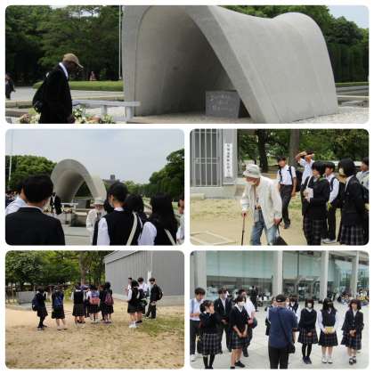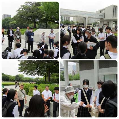 それぞれのグループにガイドさんが付いていただき、被爆アオギリの木、原爆の詩、原爆慰霊碑などの説明をしていただきました。