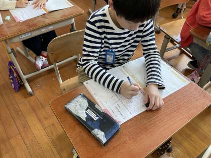 道徳では「お月さまとコロ」という題材を通して、素直な心でいるとどんな良いことがあるのかについて話し合いました。「素直になりたいけどなれない時もある。」と話す子どもたちでしたが、素直でいることで自分も周りの人も晴れ晴れとした気持ちになることに気付くことができました。