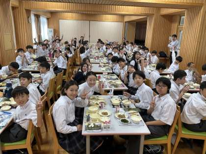 今日は西学舎で給食を食べて5・6時間目の授業も西学舎で行いました。「みんなで食べる肉みそ納豆はおいしいな!」とみんなで楽しく給食を味わうことができました。
