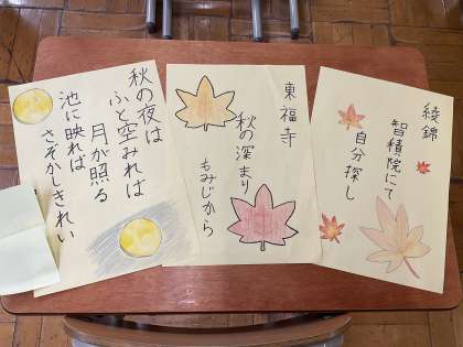 やっと少し涼しくなり、秋らしい気候の日も出てきました。6年生に「秋といえば?」と尋ねると「秋刀魚!」「さつまいも!」「栗!」と食欲の秋が一番に出てくる子どもたちが多かったです。「スポーツの秋」「読書の秋」「食欲の秋」とそれぞれの秋を楽しんでいるようです。国語の学習では、秋にまつわる俳句や短歌を詠んで交流をしました。地域ならではの秋を見つけている子どもたちもたくさんいました。