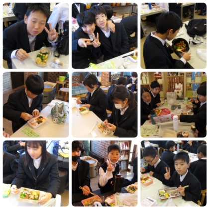 お昼ご飯の時間になりました。みんな持参したお弁当を楽しそうに食べています。
