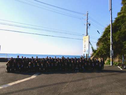 6年生のみんながテキパキ行動してくれているので、その時間を利用し、海をバックに学年写真を撮りました。