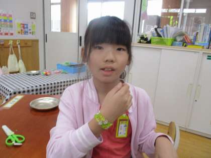 自立活動では、手先の練習で「ビーズとおし」をしました。子どもたちは、前回からの積み重ねもあって、スムーズに取り組むことができました。どんなサイズやデザイン、色味にするかも自分たちで考えて活動ができました。