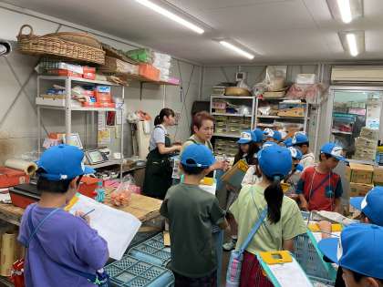社会科の学習「商店のはたらき」の単元で、保護者の方には、以前に買い物調べでご協力いただきありがとうございました。集計した結果、やはりお家の人たちはスーパーマーケットで食料品を買うことが1番多いことが分かりました。そこで、スーパーマーケットでどんな工夫をしているのか調査をしたいと子どもたちは考え、本日、「ステップ今熊」に行かせていただきました。店内では、どんな工夫をしているのかを見つけるために、品物の並べ方や置き方、配置などじっくり見ては、お店の方にも積極的に質問している児童の姿がたくさん見ることができました。また、普段は立ち入ることができない部屋に入ることができ、また身近なところで作業を見せていただいたので驚きの連続でした。限られた時間だったので、もう少し見たかったと子どもたちも話していたので、買い物に行かれる際は、お子さんと一緒に行っていただけるとありがたいです。