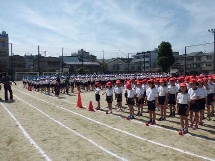 6月14日(土)の体育大会に向けて,ファーストステージの子どもたちが入場行進などの練習をしました。自分の座席の場所を確かめた後,入場行進の仕方や準備運動のダンス,応援の練習などをしました。初めての練習となった1年生も,最後までしっかりと頑張ることができました。