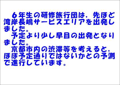 学校に近づいてまいりましたら再度報告させていただきます。