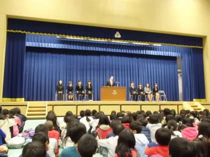 3月30日(月)に東山泉小中学校から転任される教職員の方々の離任式がありました。児童・生徒代表のお別れの言葉には,様々な場面でお世話になった感謝の気持ちがたくさん詰まっていました。開校してからこの1年間を一緒に過ごした教職員の方々との寂しいお別れに,涙をこぼす子もも見られました。