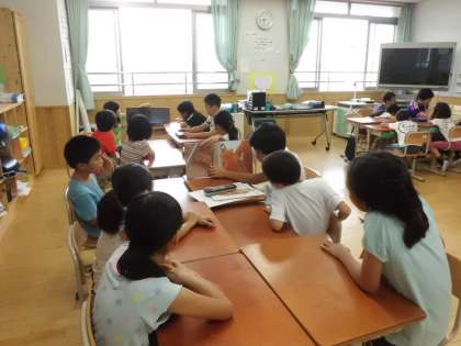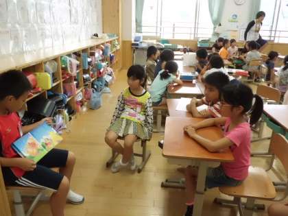7日(火)の朝の読書タイムは,フレンドリーグループの読み聞かせでした。フレンドリーグループのリーダーが絵本を選び,読み聞かせをしました。「おもしろかったよ。」「読むのが上手だったよ。」など,笑顔で読み聞かせを楽しむ低学年の子ども達の姿が見られました。