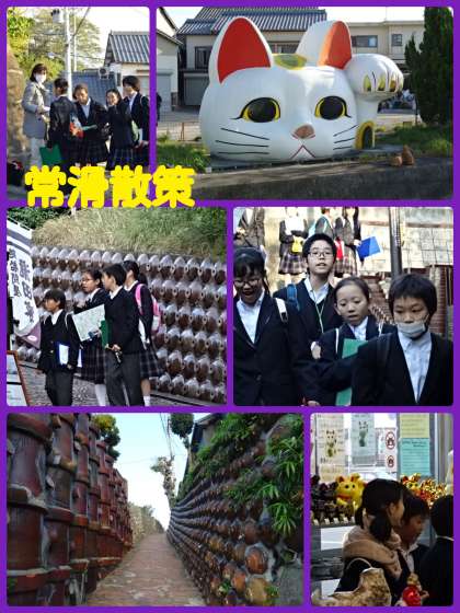 そのあと少しバスで移動して常滑散策を行いました。班毎に別れて地図を見ながらのんびり散策することができました。お土産もたくさん買い込みました。明日の分のおこづかいは残っているのでしょうか?