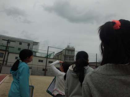 でも4時間目に再び観察した時には,空一面の雲に加え灰色の雲がところどころにあり,ぽつぽつ雨。