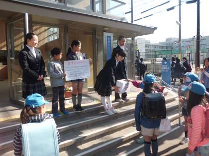 平成28年4月14日(木)に九州地方で発生した地震による災害で被災された方々を支援するため,児童生徒会が中心となって義援金を募らせてもらうことになりました。朝義援箱を持った児童生徒会役員が立つと,たくさんの子供が義援金を入れてくれました。また保護者や地域の方々,近隣の学校の学生からも義援金をいただき,心温まる時間となります。22日(金)まで義援金を募りますので,引続きご協力のよろしくお願いします。