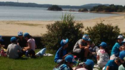 5年生は,全員元気に志摩自然学校に到着しました。車内では,レクレーション係が中心となってゲームを進め,みんなで盛り上がりました。また,4日目に行く鳥羽水族館のDVDを見て学習もしました。到着後,青空の下みんなでお弁当をおいしくいただきました。午後は子どもたちが楽しみにしているシーカヤックです。