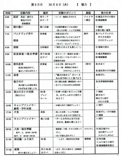 10月5日(火),2日目の予定です。めあては「協力」です。
