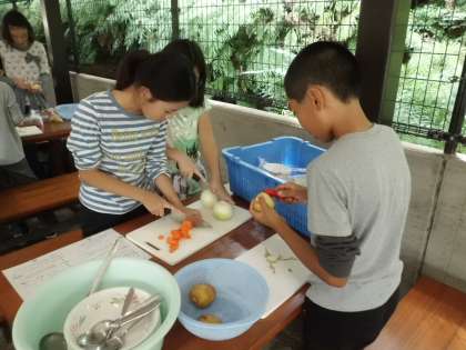 朝の集いや清掃を終えて,次は,カレー作りです。
